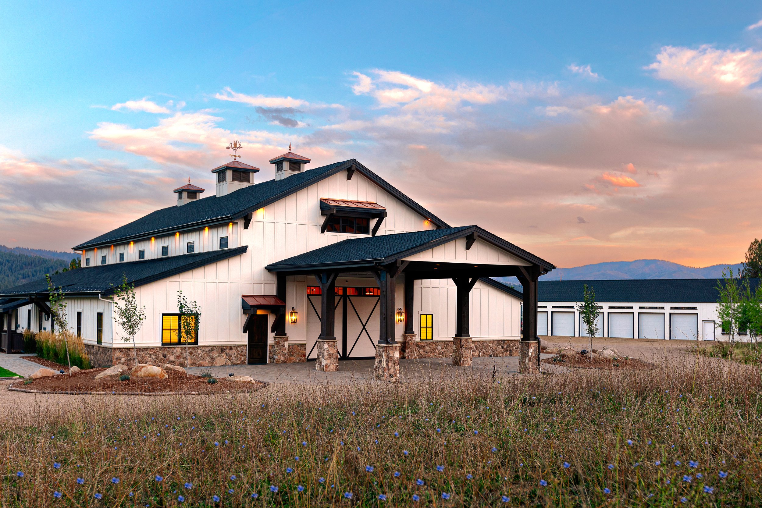 The Ranch House is 12,000 square feet of living space with a grand kitchen, spacious dining and living room, a large library, and a game room, all designed with an open concept.